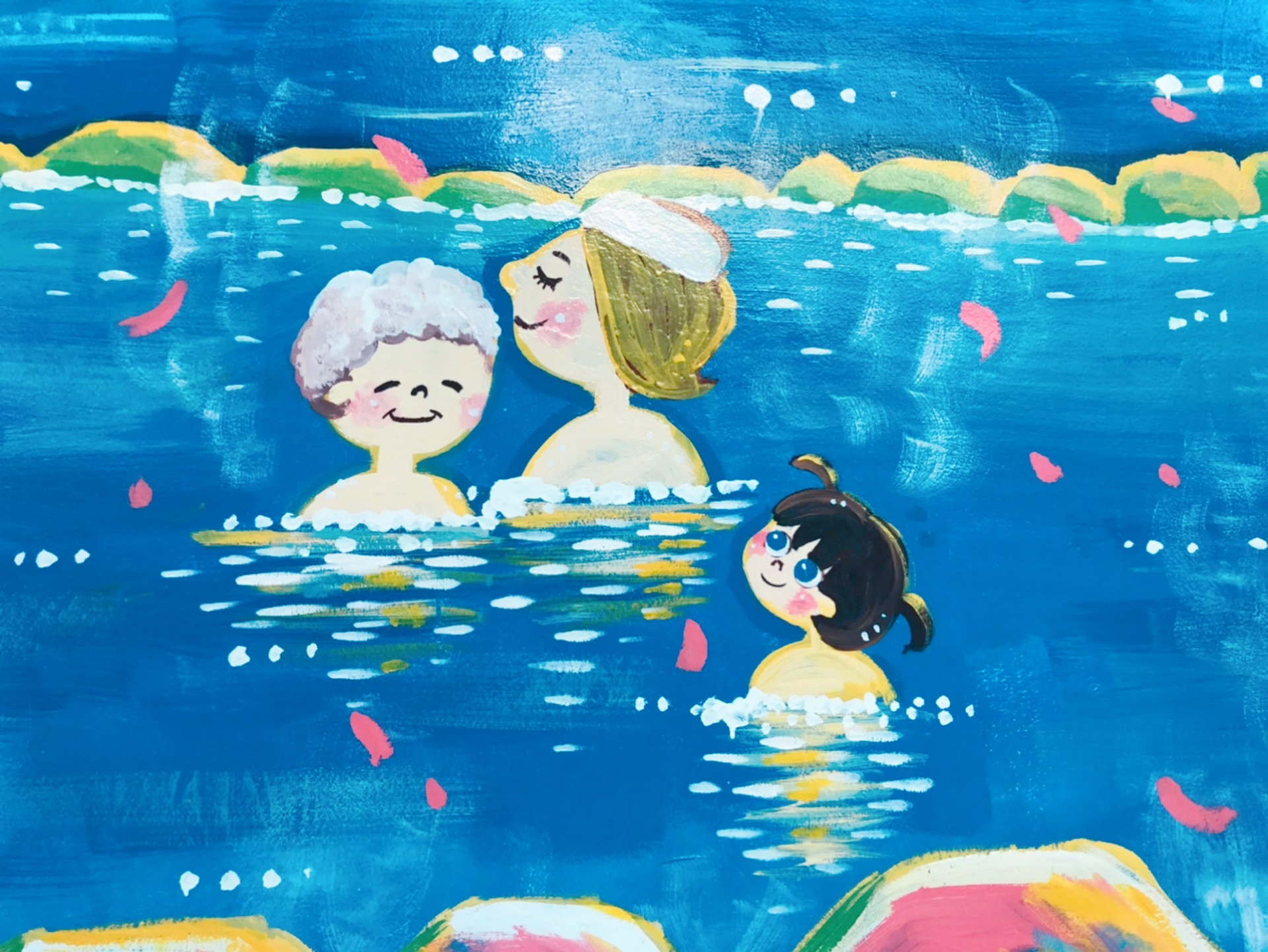 お湯に浸かりながらゆったり絵を眺めて楽しめます